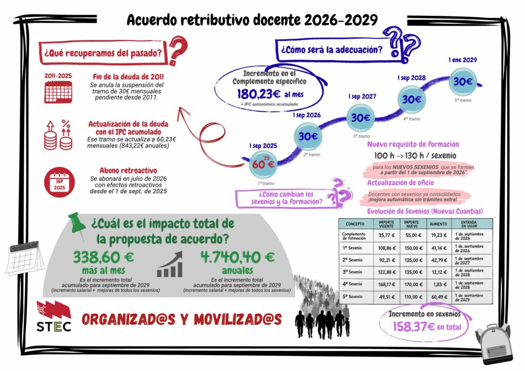 Hoy, 19 de marzo de 2026, acabamos de firmar un acuerdo con la Consejería de Educación sobre la mejora de las condiciones laborales y retributivas del profesorado de la enseñanza pública no universitaria de Cantabria que pasamos a resumir: