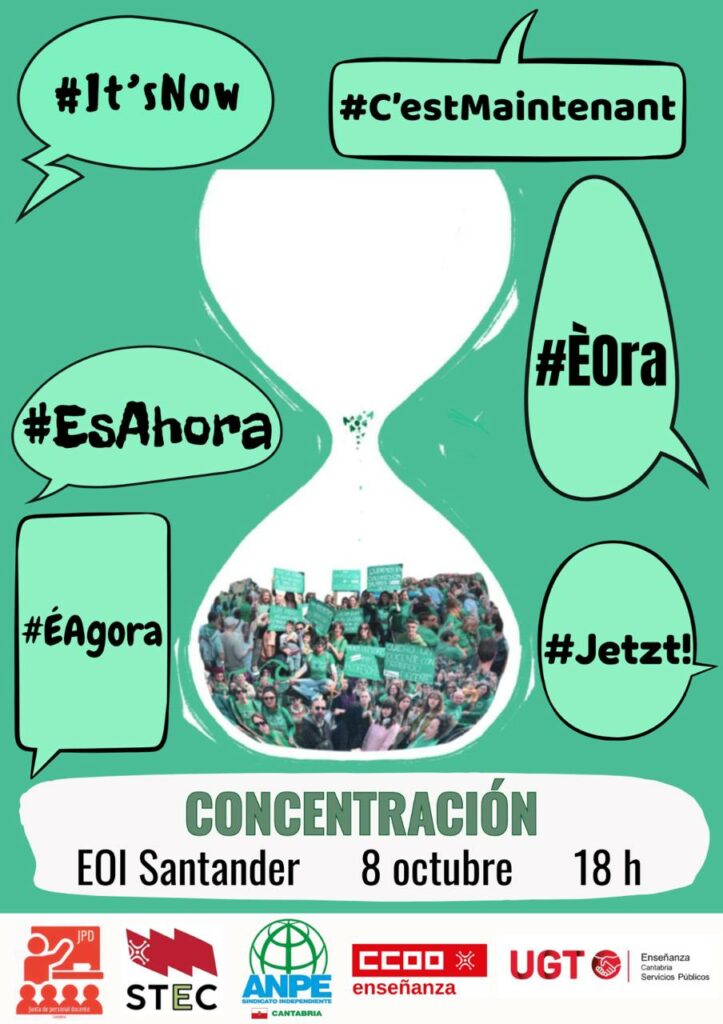 El jueves 8, coincidiendo con la huelga en las Escuelas Oficiales de Idiomas, volveremos a concentrarnos l@s docentes de la Pública cántabra en la sede de la EOI de Santander.